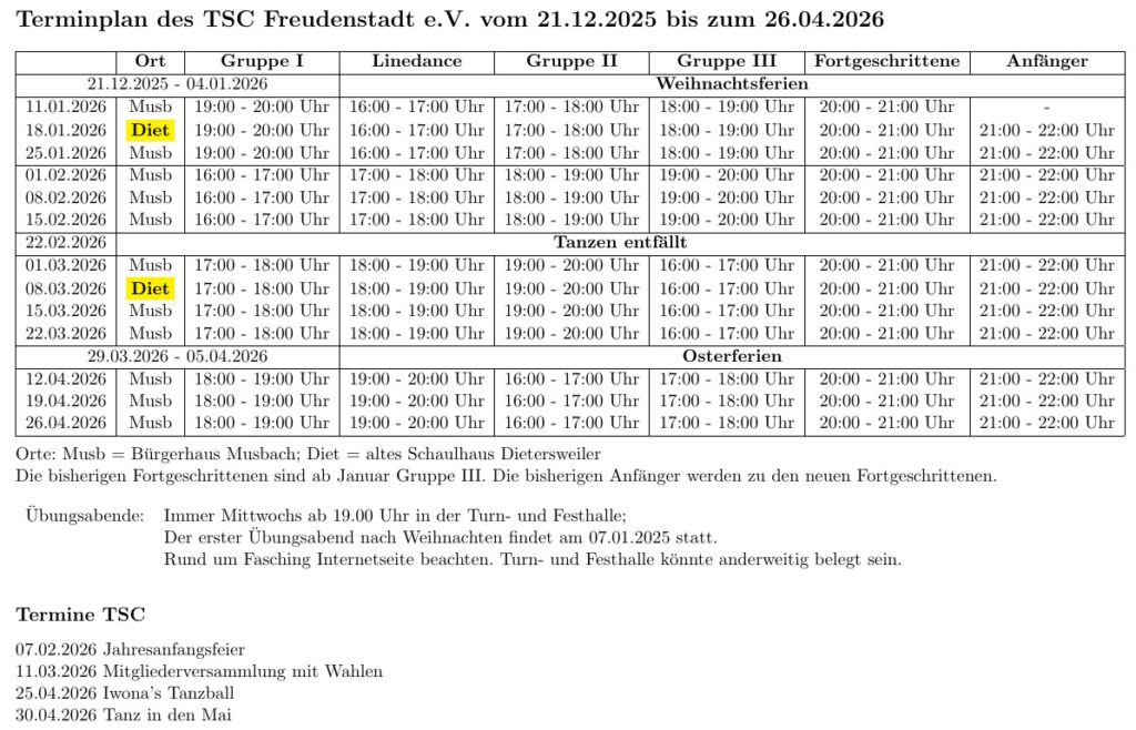 Die Termine sind im nachfolgenden Tanzplan enthalten.